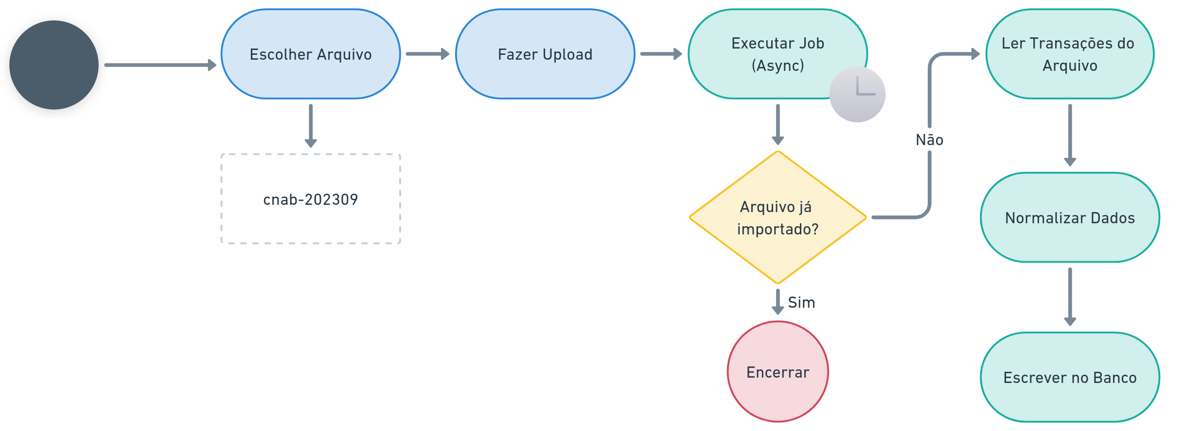 - O controle de unicidade das transações é feito por arquivo CNAB, o que significa que o processamento das transações é feito apenas uma vez por arquivo.